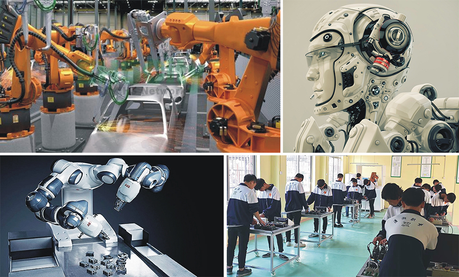 机器人及其智能装备的集成设计、编程操作 及维护、修理等方面都需要专业人才,相关技 术人员工资可达年薪10万元以上。